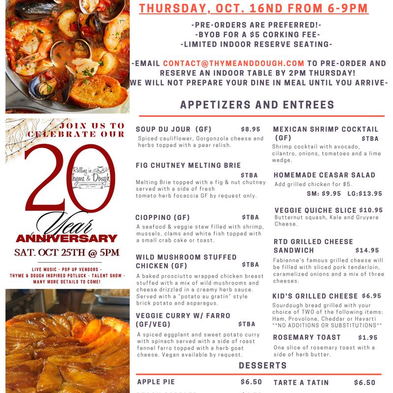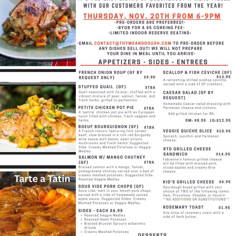 Menu is subject to change due to availability at the D.S. Farmers Market